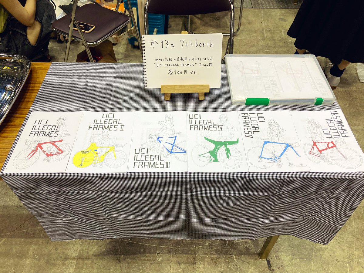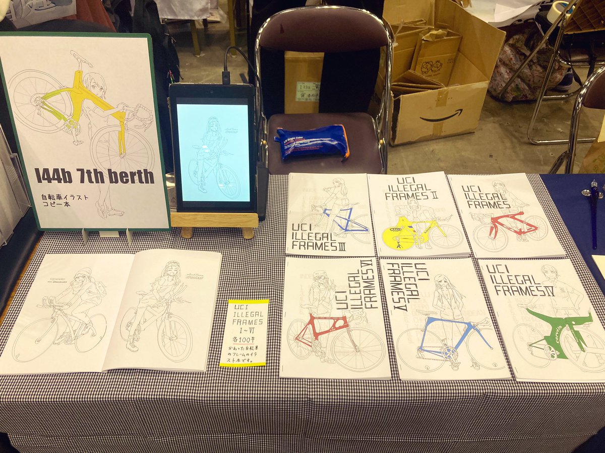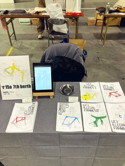 #COMITIA138 #コミティア138 comitia138 す15a 7thberth設営できた。さむい。 UCI ILLEGAL FRAMES VIだします。変なチャリの本です。I thru Vの既刊もすこしあります。よしなにー