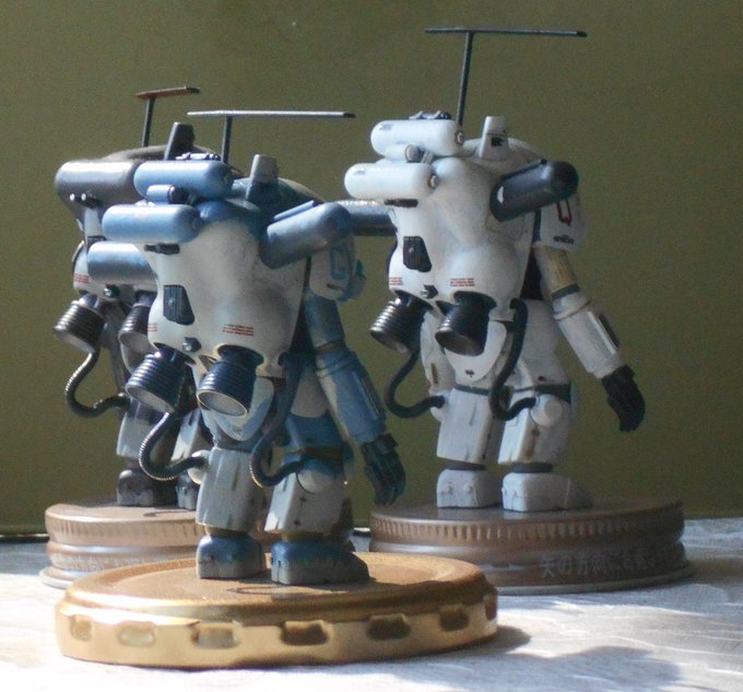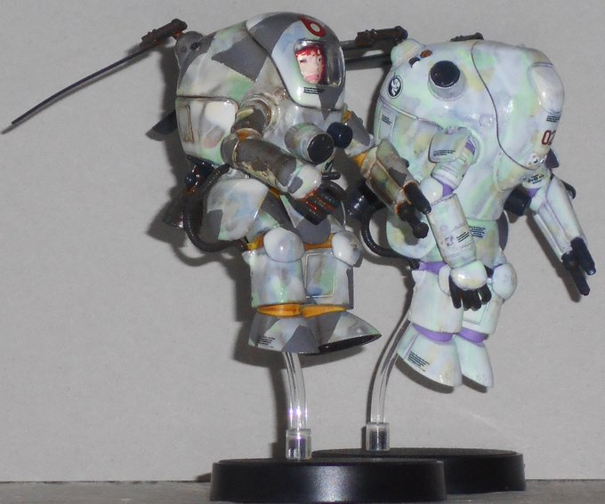 #マシーネンクリーガー #エグゾフレーム 同じ1/35スケール,組み合わせました。 乗り手を見たいのと、盛り過ぎると「P.K.A.で済む」ことから、装甲はここまでで完成です。