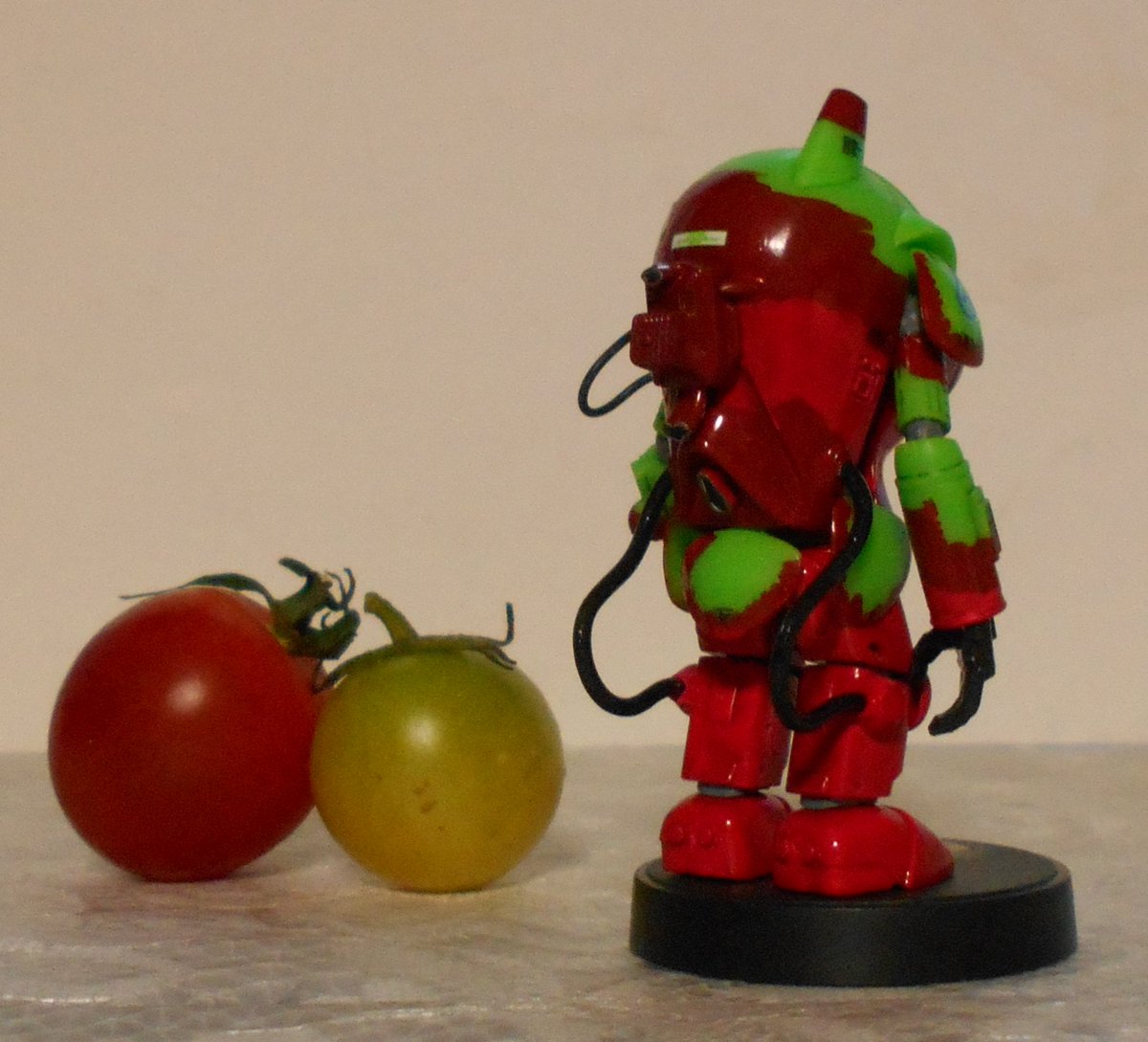 #マシーネンクリーガー #ガチャーネン リコピンジャー1体完成しました、成形色「トマトグリーン」が鮮やかです。第1弾の他のアイテムも気軽に入手出来たらいいのですが。