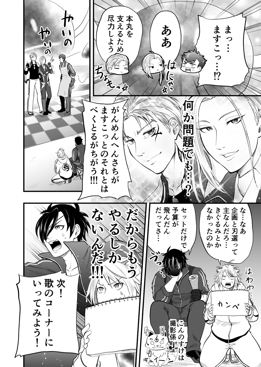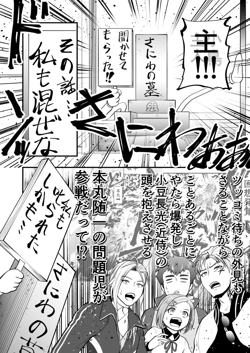 51 130 小豆さん筆頭に審神者の無茶ぶりに巻き込まれる男士の面々 頭を抱えるものもいれば、全力で挑むものや楽しむものも…みんな違ってみんないい(戦しろ) 21/06/11 19:57