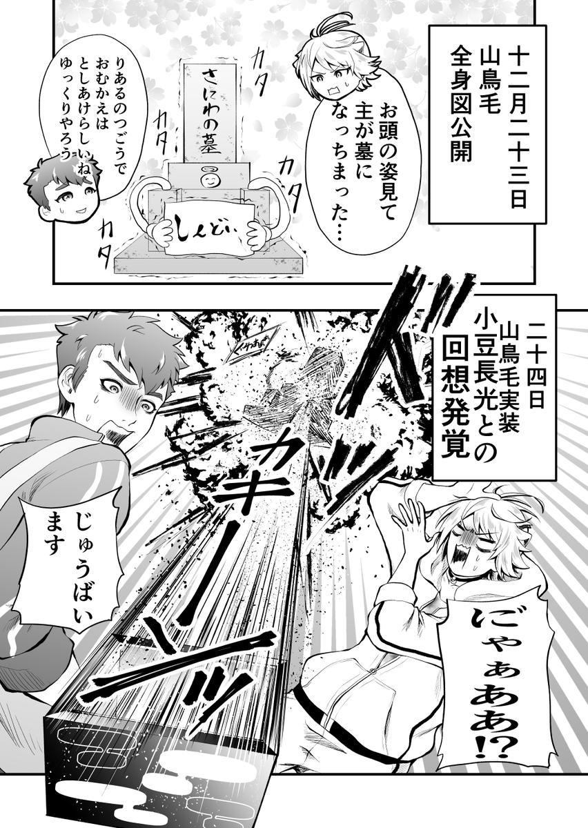 弊本丸では日常茶飯事な包丁くんと小豆さんの追いかけっこ 2枚目は遂に来る極でこっちも極まったらどうしようっていう