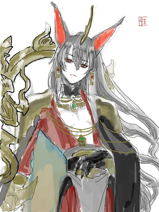 55 177 #アークナイツ版深夜の真剣お絵かき60分一本勝負 山海衆首領(睚) ちょっと遅刻した 23/08/10 23:13