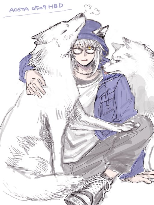 73 185 アオスタ お誕生日おめでとう~ バケハかぶってるのが見たいすぎて衣装捏造した #アークナイツ版深夜の真剣お絵かき60分一本勝負 23/05/09 23:03