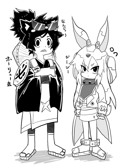 #イラスト 人間形態🦝🐰