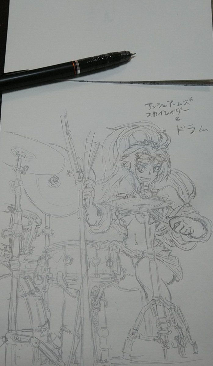 AD-1スカイレイダー&ドラム とりあえずドラムから描いていったけどムズすぎたw そこからスカイレイダー描くのに2時間くらいかかったよ。 バランス悪いσ(^◇^;) ドラムってどれ叩くのかよくわかんないので間違えてたらごめんなさいw #アッシュアームズ #アシュア #アシュアート #楽器シリーズ7