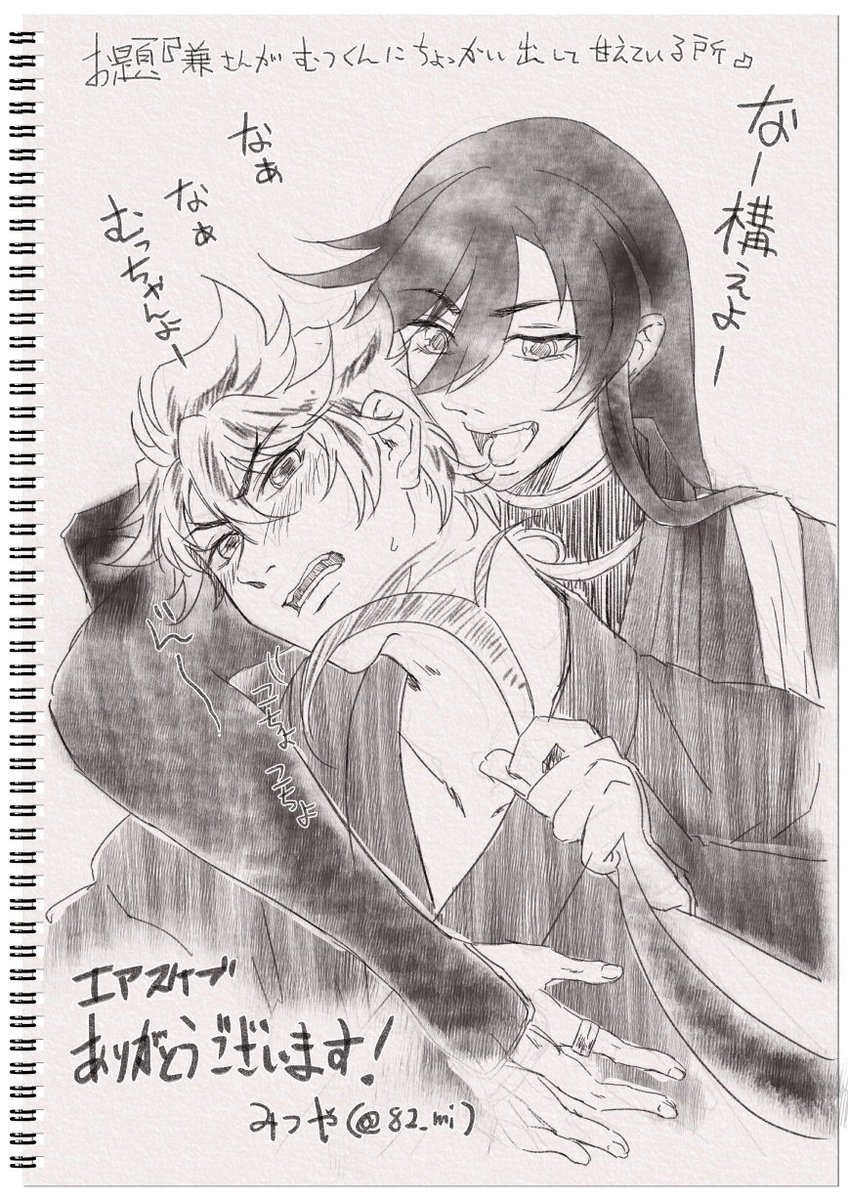 エアスケブ 『兼さんがむつくんにちょっかい出して甘えている所』 甘える兼さん大好きです!ありがとうございました😊