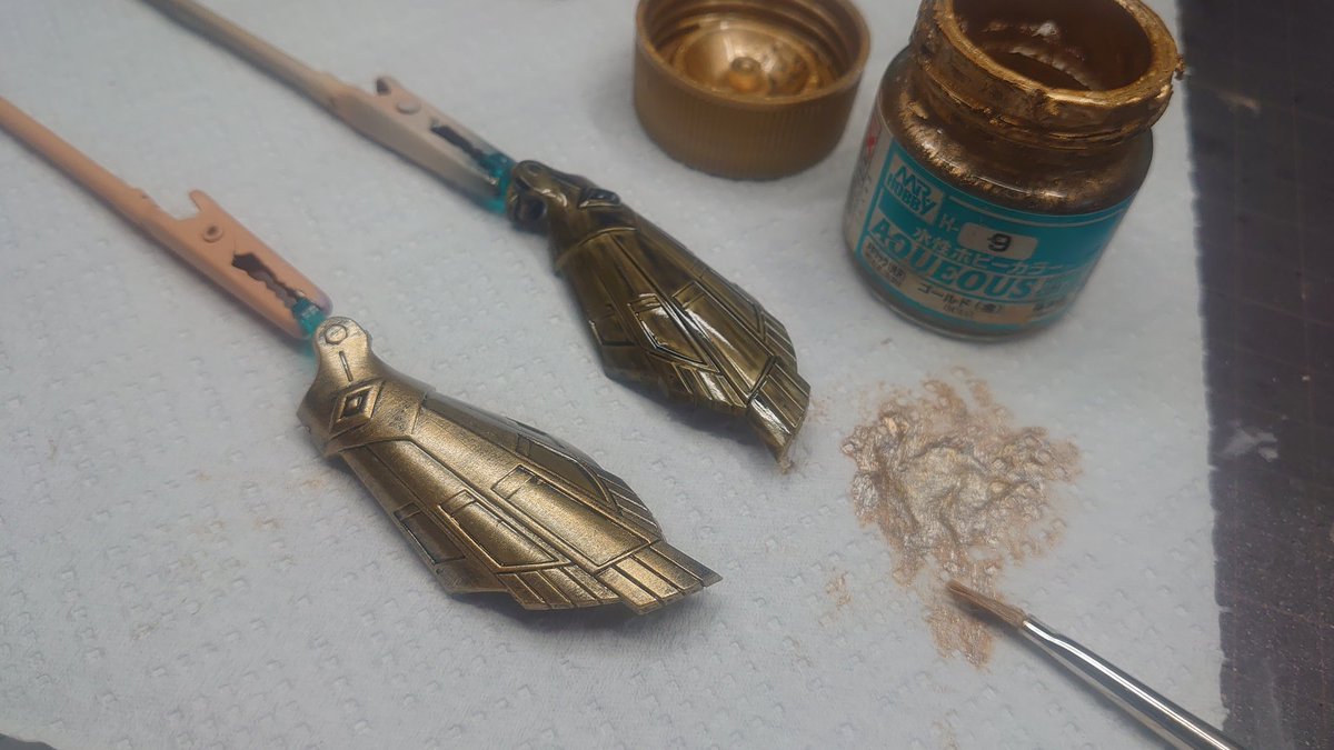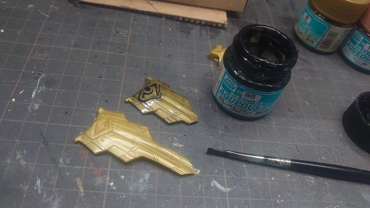 #これを見た人は塗装前と塗装後を貼れ しつこいくらい言いますw 難しい事は何もない! 筆でスモークグレーをベタベタ塗って、上からゴールドをドライブラシでするだけ簡単! もっと輝きが欲しければ、更にシルバーやカッパーをドライブラシするだけ! 筆と水性アクリルだけで変わる景色!