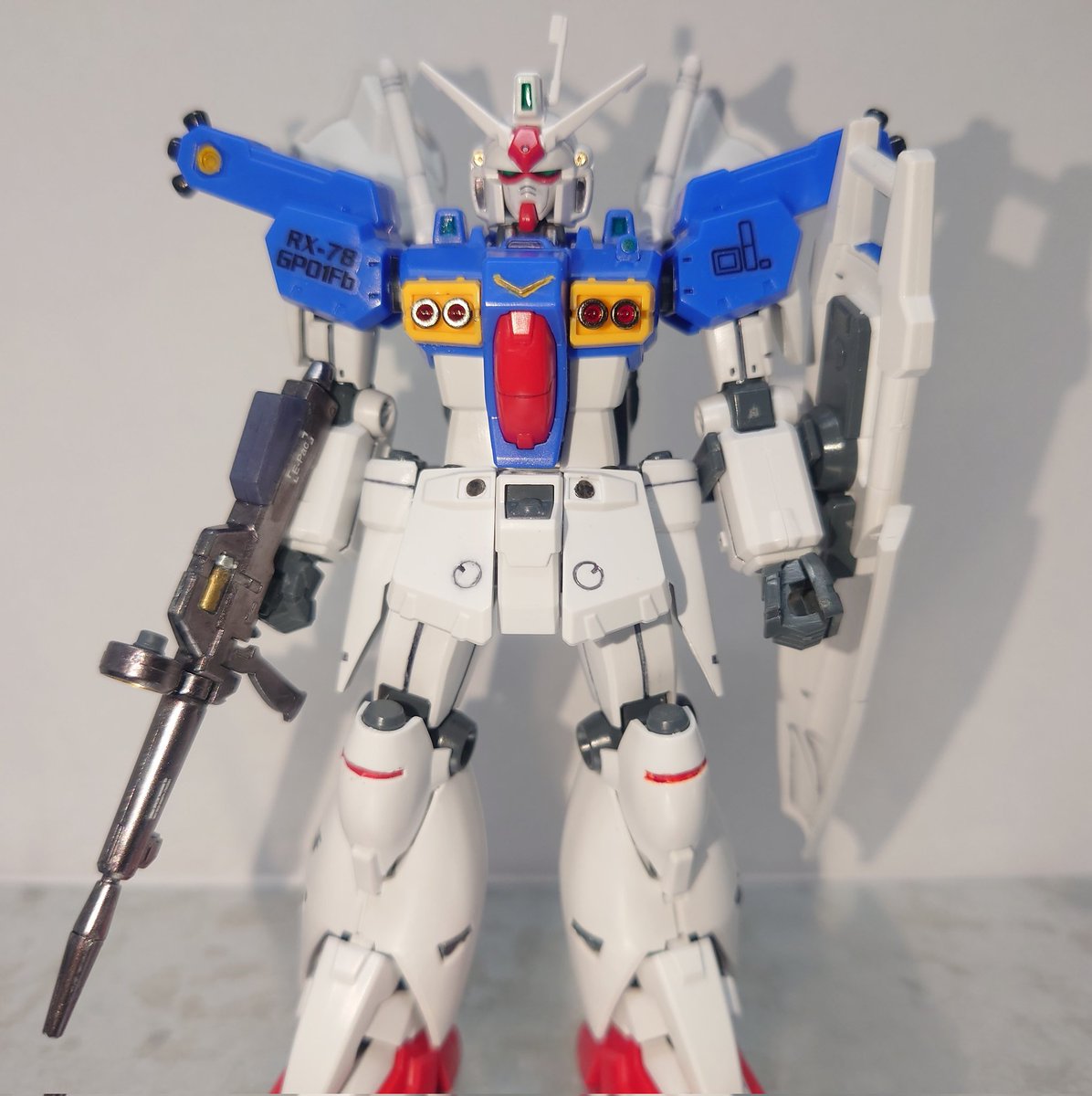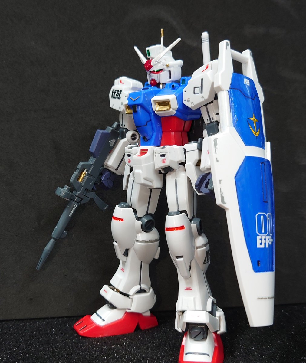 HG RX-78-GP01 ゼフィランサス 盾に苦戦しましたが、なんとか出来ました。 部分塗装して、所々スジ彫りして、合わせ目消しして、スミ入れしてと自分にやれる事を全部した機体になりました。 #ガンプラ #ガンプラ好きと繋がりたい #ガンプラの画像を貼るとRTされると聞いて