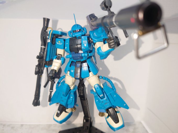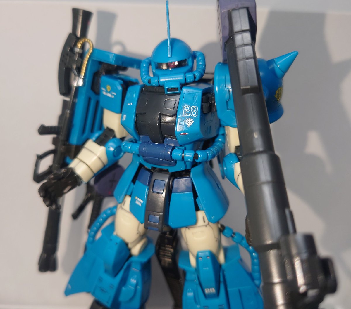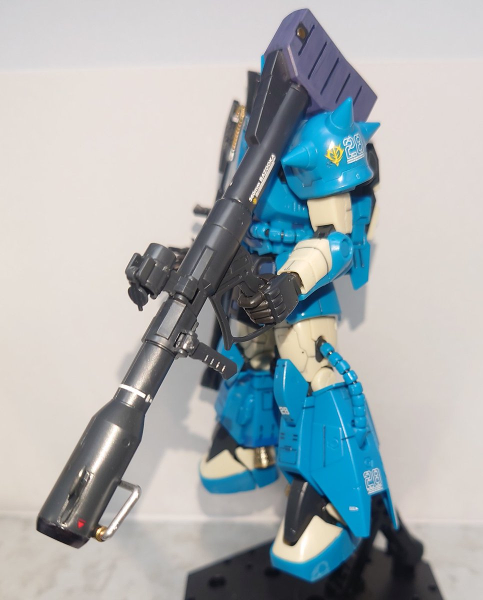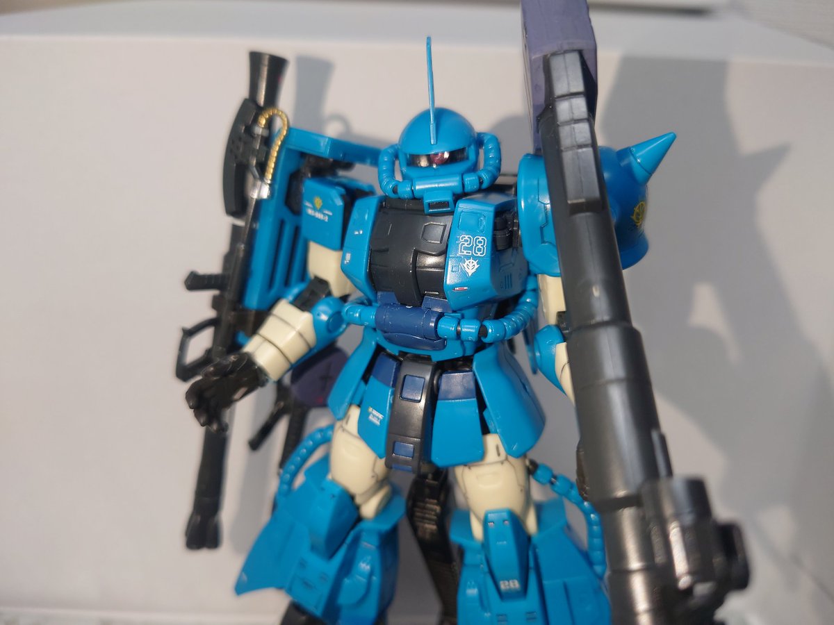 RG ロバート・ギリアム専用ザクⅡ 完成です。 デカールが全て水転写式なので全部はやっていません(笑) バズーカ好きとしては、ジャイアントバズ付いていたの嬉しいですねぇ。 何より、左肩に武装をマウント出来るのも◎! 重いけど… #ガンプラ #ガンプラ好きと繋がりたい