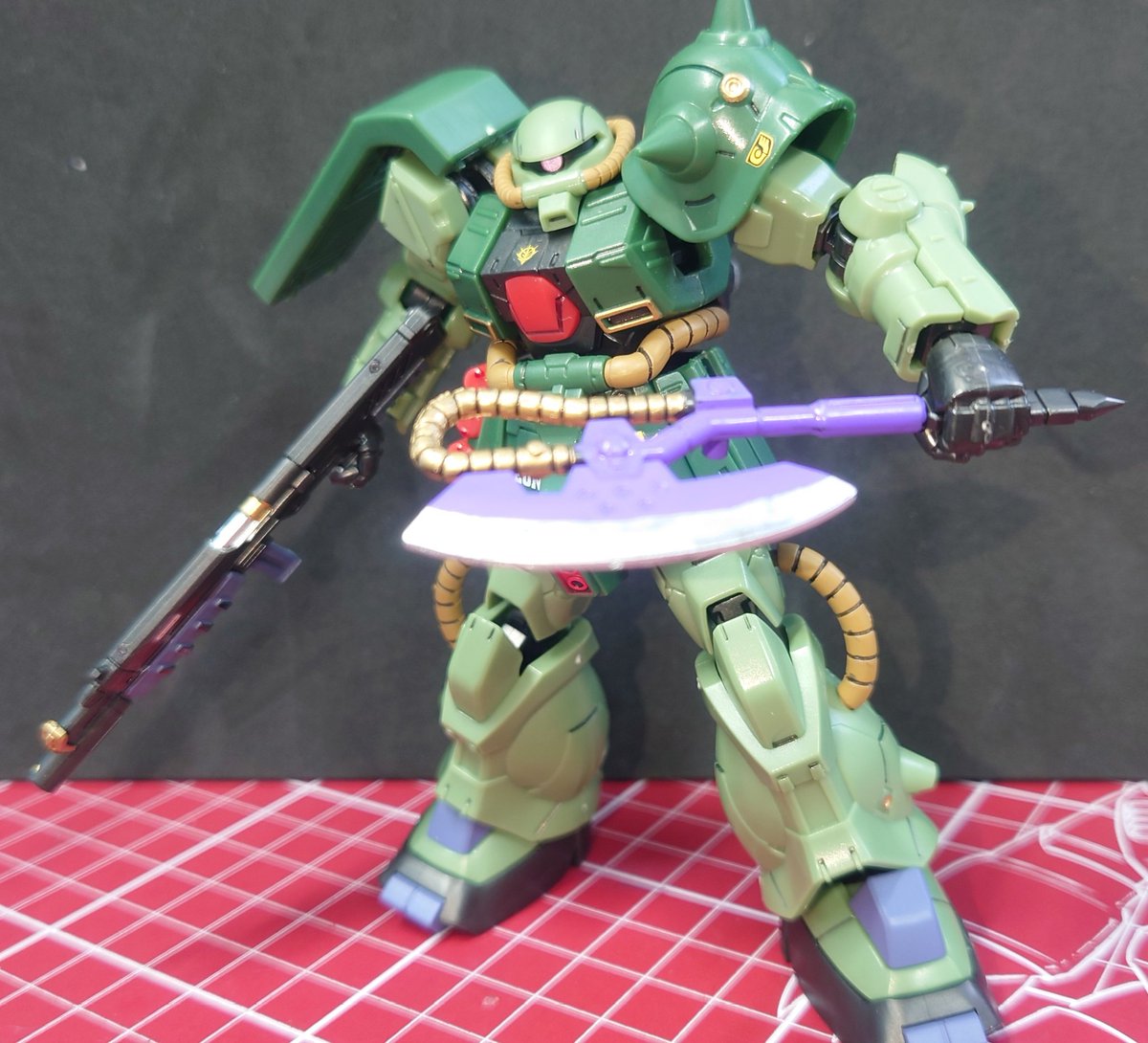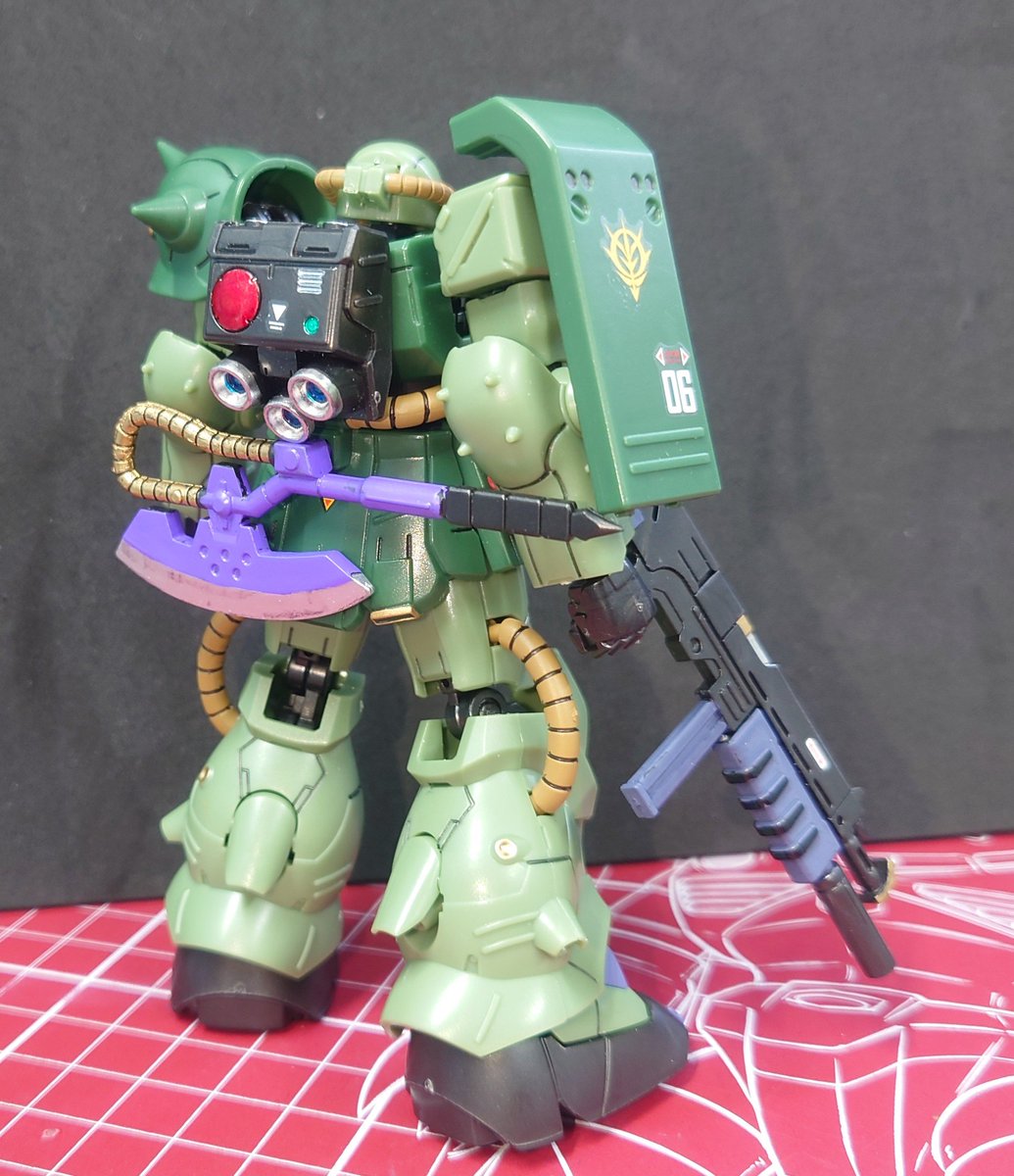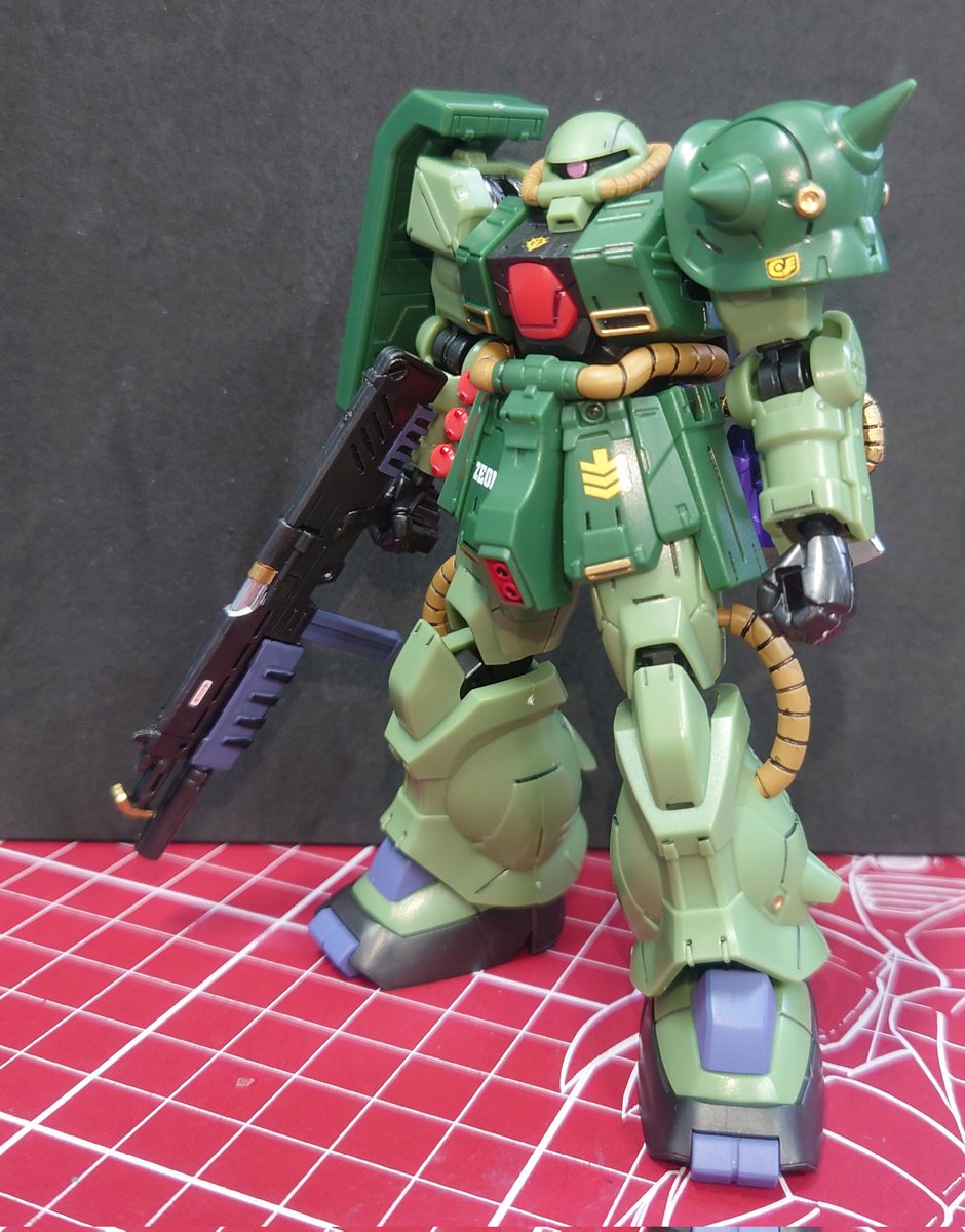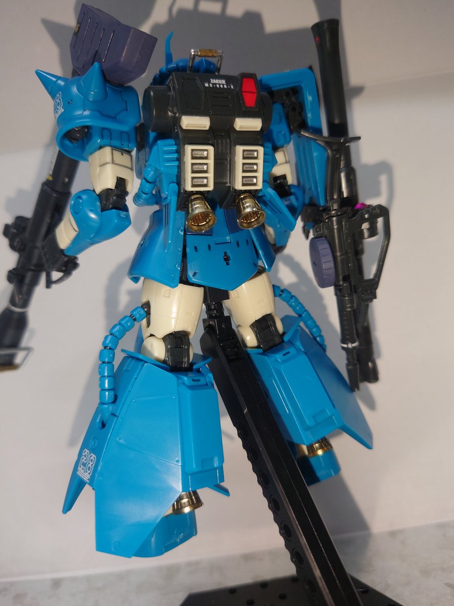 RG ロバート・ギリアム専用ザクⅡ 完成です。 デカールが全て水転写式なので全部はやっていません(笑) バズーカ好きとしては、ジャイアントバズ付いていたの嬉しいですねぇ。 何より、左肩に武装をマウント出来るのも◎! 重いけど… #ガンプラ #ガンプラ好きと繋がりたい