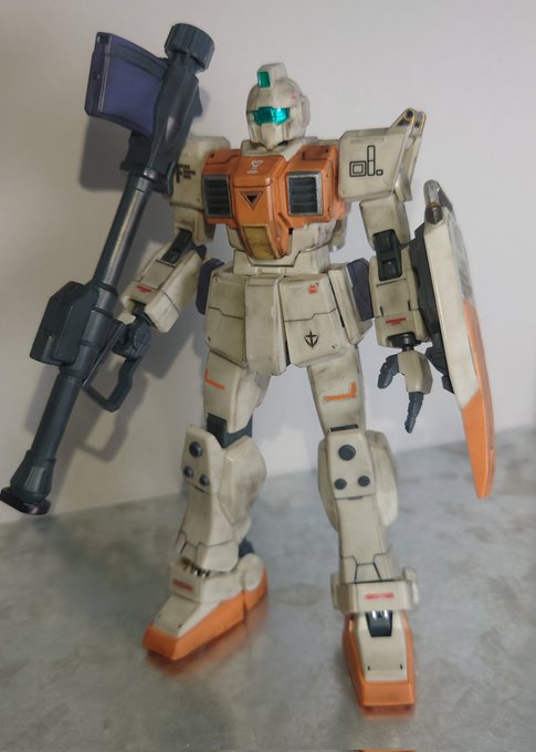 HGUC 陸戦型ジム ウェザリング終わりました。 カッコよく仕上がったのではないかと! 今一つ正しいやり方がわからないんですけどね(≧▽≦) #ガンプラ #ガンプラ好きと繋がりたい #ガンプラの画像貼るとRTされると聞いて