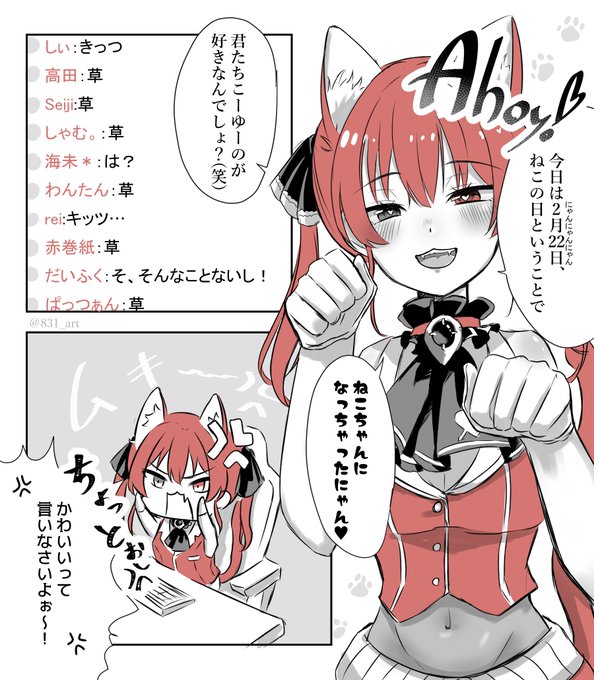 137 538 ネコの日なので、船長がネコになった漫画描きました。 #猫の日 #マリンのお宝 23/02/22 18:18