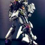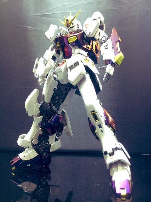 REビギナギナⅡ完成。今回は一見ラップ塗装ぽく見えますがクリスタルエフェクトという塗装方で仕上げました。尿素とお湯と食器洗剤でできます。割合で結晶の大小変わるみたいです。#ガンプラ #ガンプラの画像貼るとRTされると聞いて