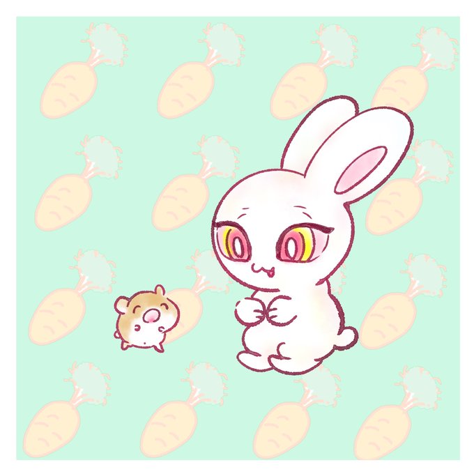 今日27日は卯年卯月卯の日🐇 5〜7時は卯の刻です うさぎさん大好き! } 🐹 #ハムスター #うさぎ #イラスト