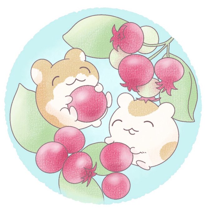 15 114 6月はジューンベリーの収穫期🫐 花言葉は『穏やかな表情』『穏やかな笑顔』 #イラスト #ハムスター #6月生まれさんおめでとう🐹 23/06/03 19:02