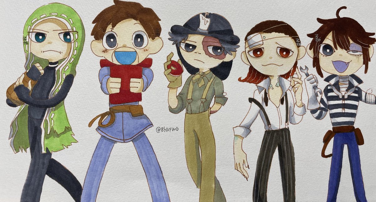 #第五人格イラスト よく使う鯖5人組🤕📕🧲🧪💡
