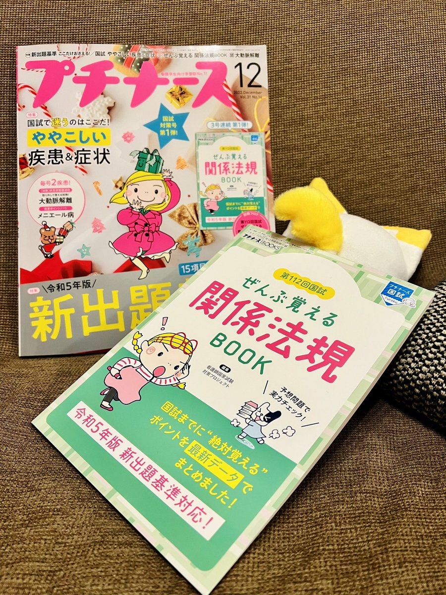 3 20 プチナース12月号🎄は産前産後の休業についての語呂合わせを描きました!労働基準法だと何週間でしょう…? そして12月にビビる…😳国試だ〜〜!ということで対策の付録がとても便利なので受験生オススメ🙌よろしくお願いします! 22/11/20 19:19