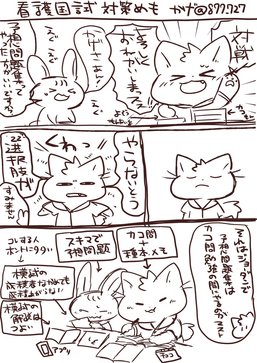 127 455 看護国試受験生さんへ 明日はいよいよ第112回看護師国家試験👊 看護師になりたいと思う人全員合格できますように、今まで頑張ってきたことが全部発揮できるようにと祈っています✨ 緊張して不安だったけどあきらめないで前に進んだら、ちゃあんと大丈夫だったよ!応援してます🐱! 23/02/11 18:01