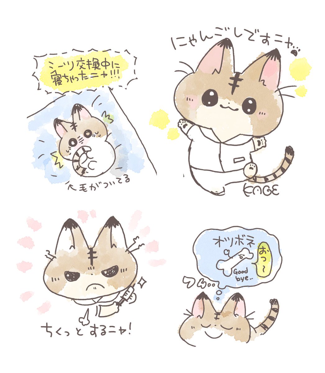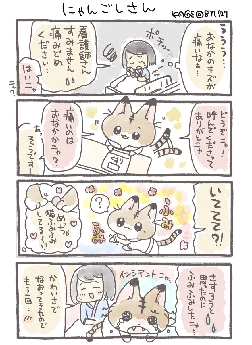 35 235 「ナースコール押してくれたら、すぐかけつけますニャ!」 「元気いっぱいにゃんご(看護)しますニャ!」 …猫の日なのでにゃんごしさんを描きました🐈「にゃくざいし」とかみんな猫になって患者さんのために頑張る🐈 #猫の日 23/02/22 06:01