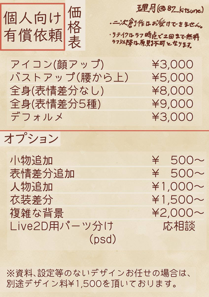 今月着手のご依頼を絶賛受け付け中です! 立ち絵から一枚絵、アイコンなど幅広く対応! 最短3日納品 よろしくお願いします🙌✨ #有償依頼受付中 #歌い手さんMIX師さん絵師さん動画師さんとPさん繋がりたい #illustration #commission #commissionsopen twitter.com/87_kitsune/sta…