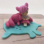 コラボカフェ衣裳ビバで小さめフィギュアできました! 現地にも連れて行ってあげられたし、オムビバに乱入しようとするアベちゃんも実現できてよかった😊😊 #高田村コラボカフェ #オレビバ #ぷてあーと #めー画 #みてみてねろちゃん #画レージ