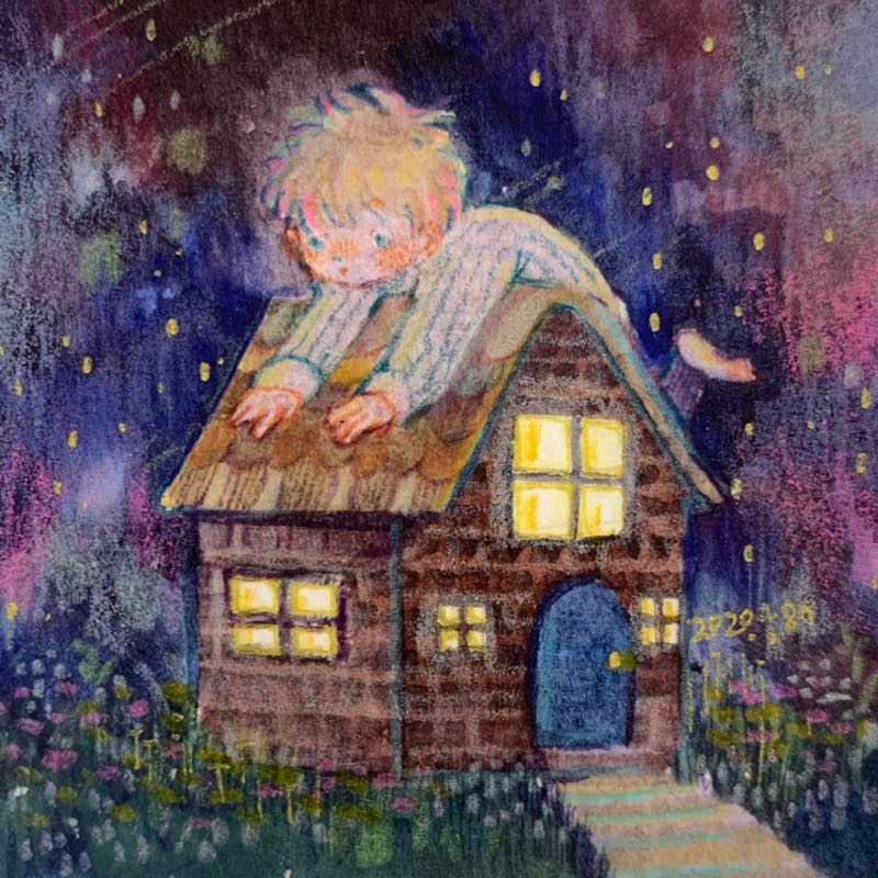 12 53 水彩と色鉛筆。 少し不思議でかわいい小さい絵を描きます🎨✏️🎉🪄🥳 #ゴールデンウィークSNS展覧会2022 22/04/30 13:58