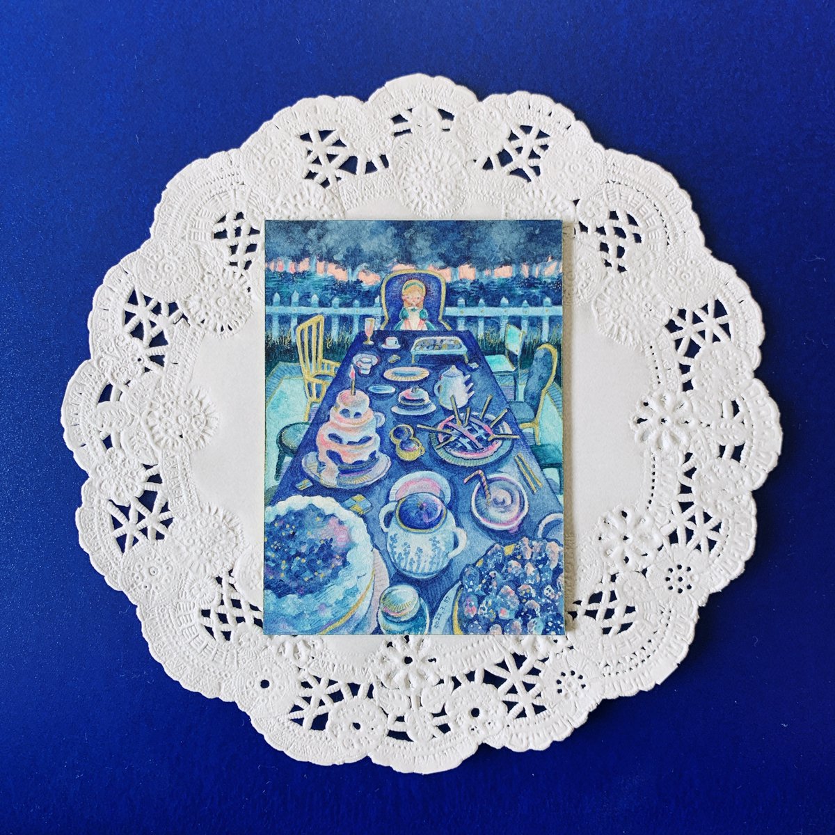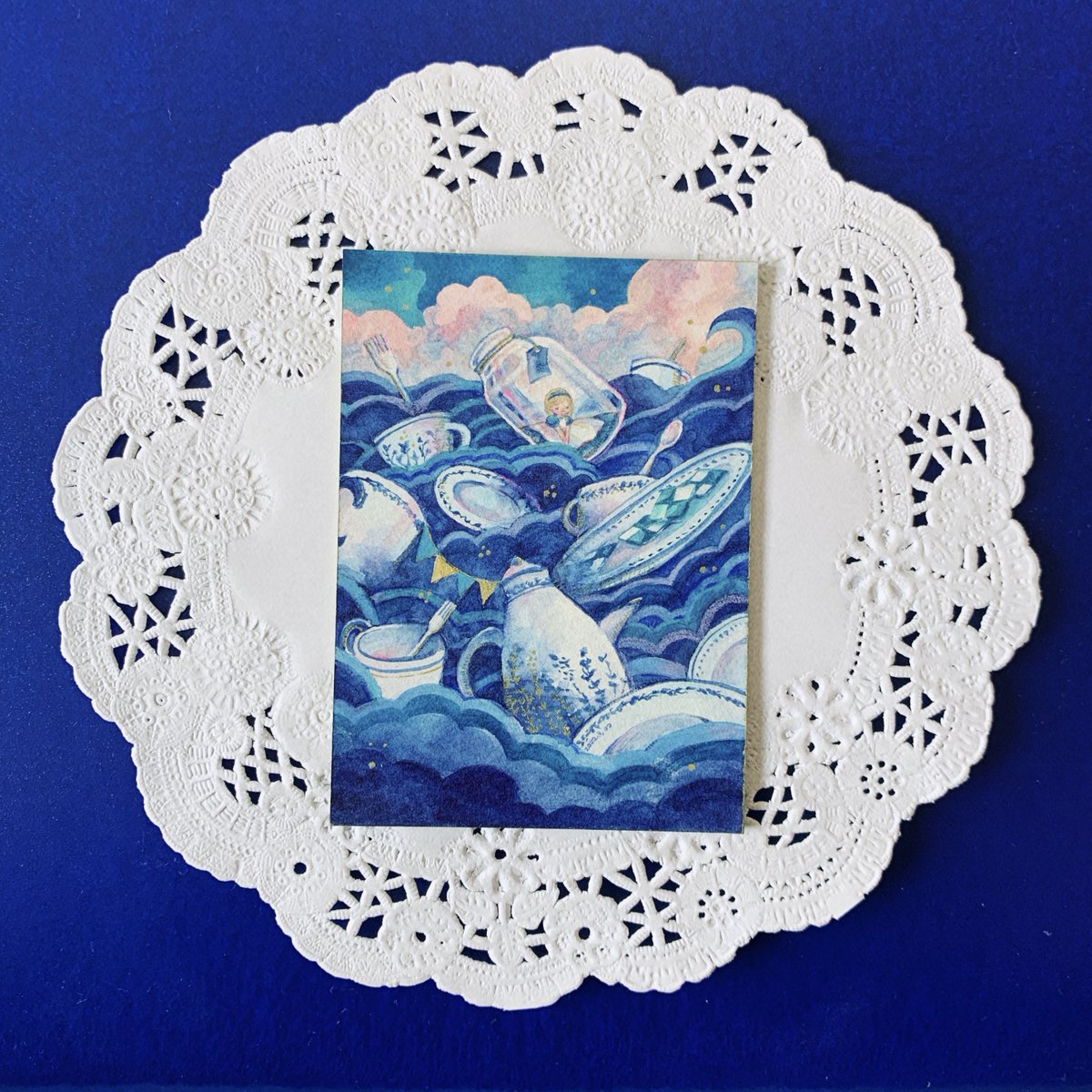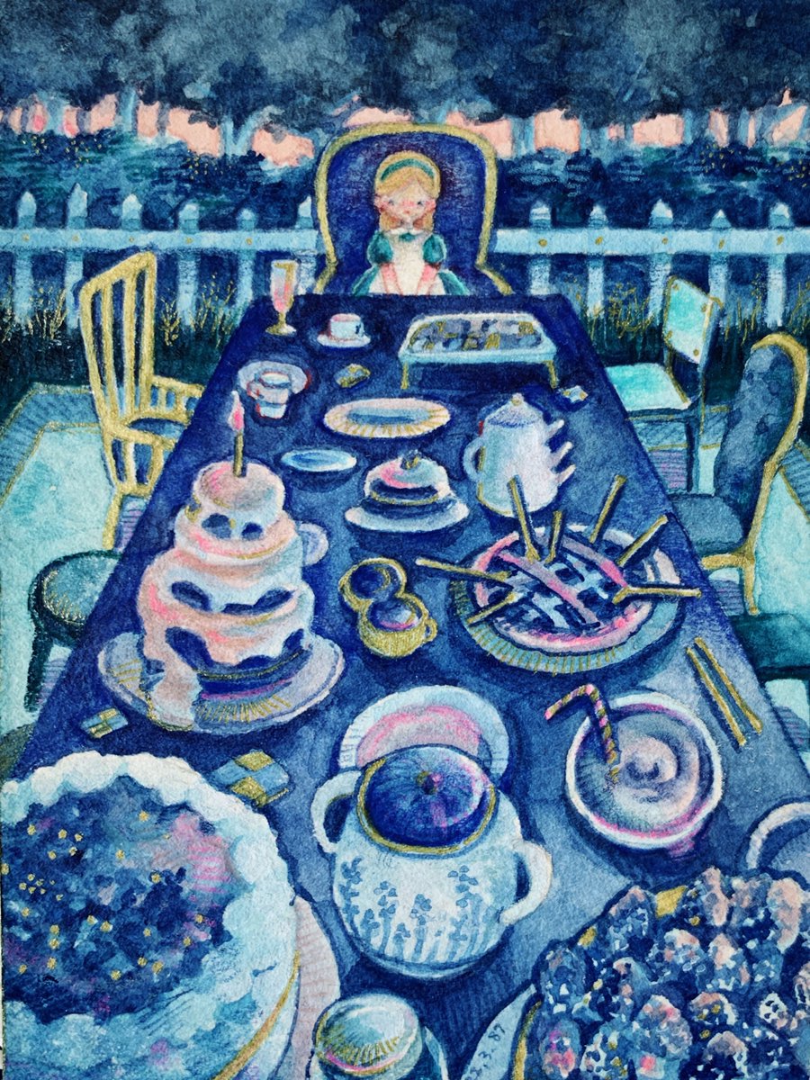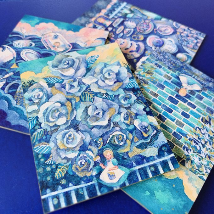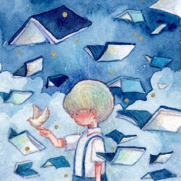 タグ企画 #自創作女子イラストフェス01 に参加します 参加させていただきます🥳 水彩や色鉛筆で小さい絵を描きます。青を塗りがちです。