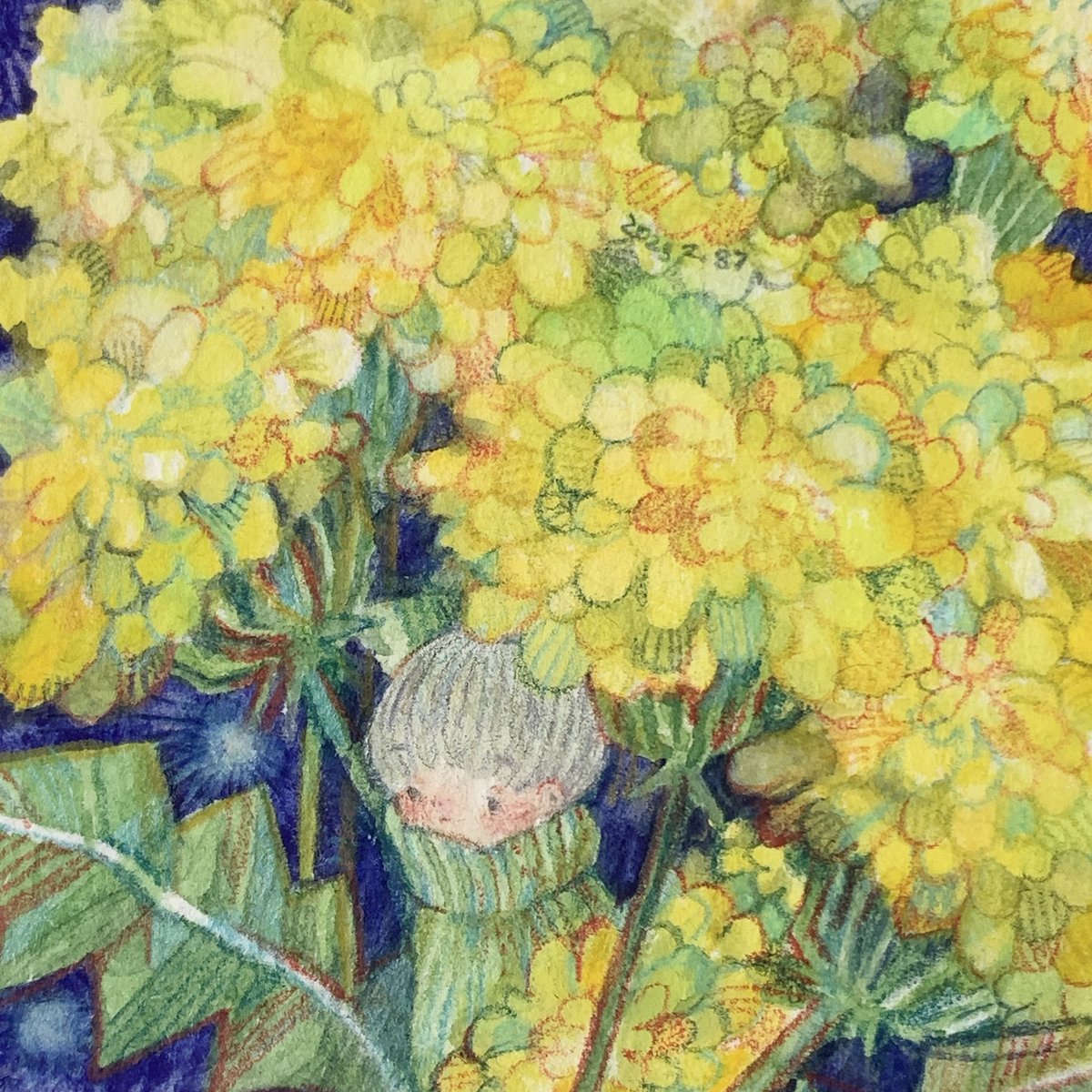 24 181 水彩と色鉛筆で小さい絵を描きます🎨✏️ 青を塗りがちな黄色好きです。 #sns秋の芸術祭2022 22/09/25 11:05