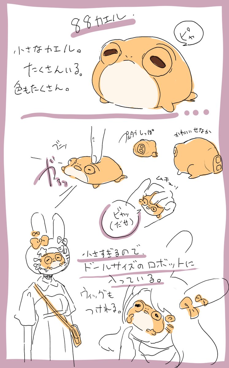 2 10 88カエルちゃん 皆のドールに入ってる88カエルちゃんも見てみたい。 作ったら@883drsuでおしえてね。 てかスクイーズになった88カエルとか欲しい。 #イラスト #カエル 22/12/20 18:04
