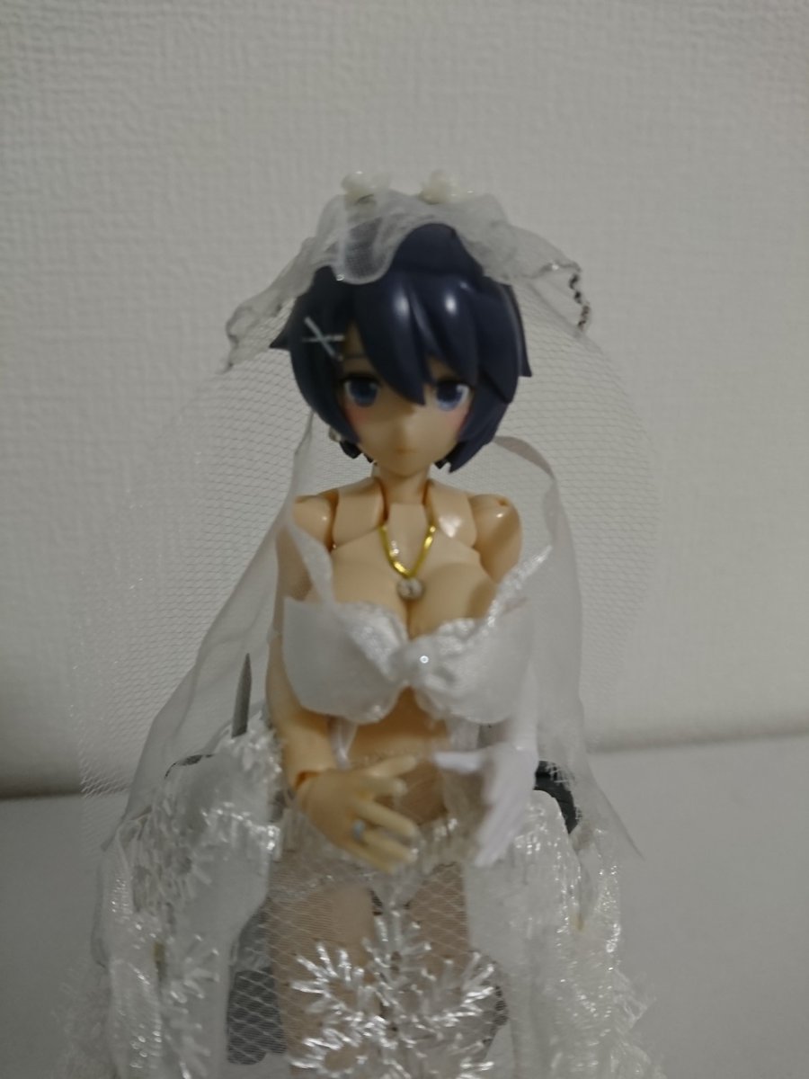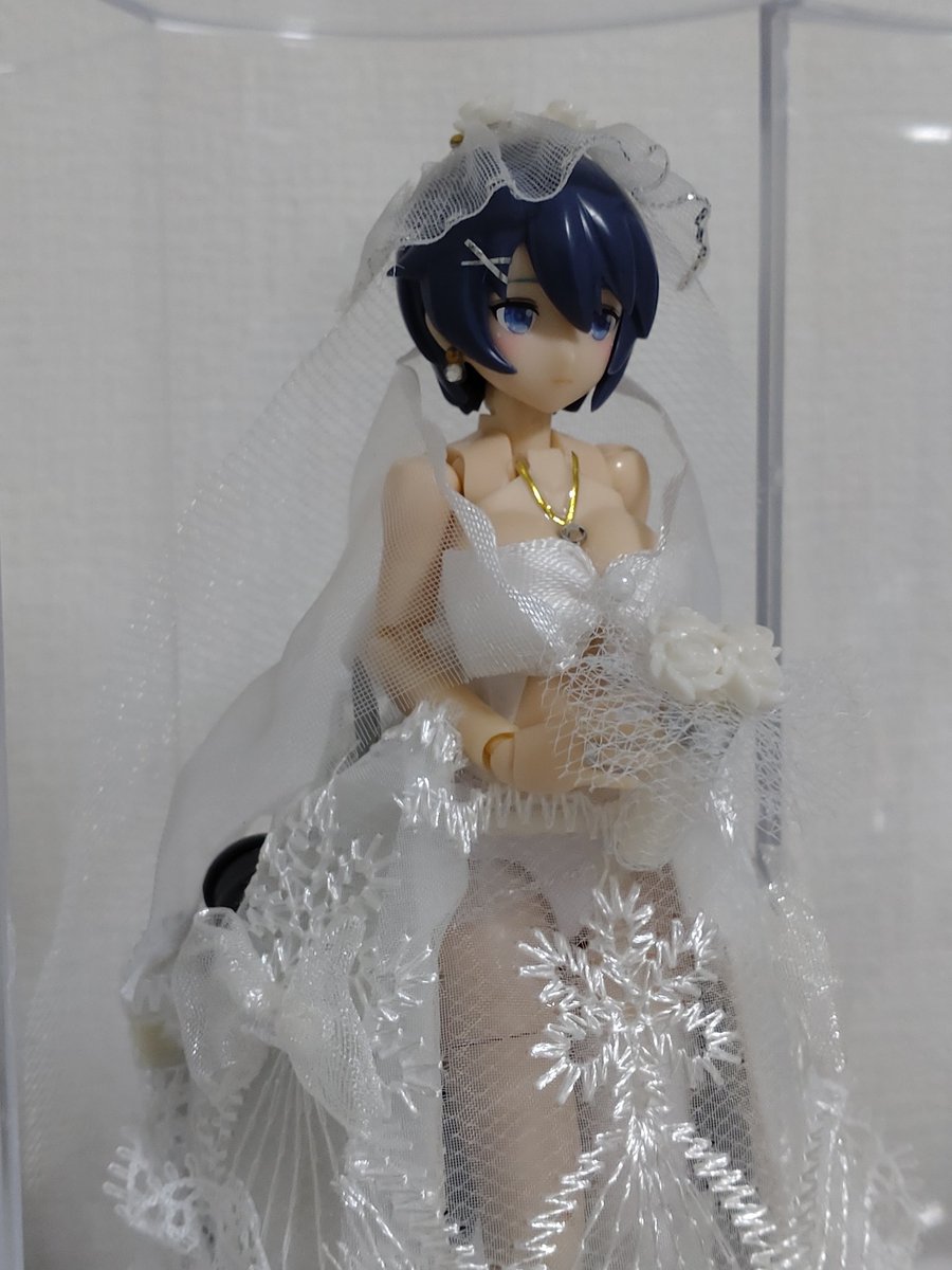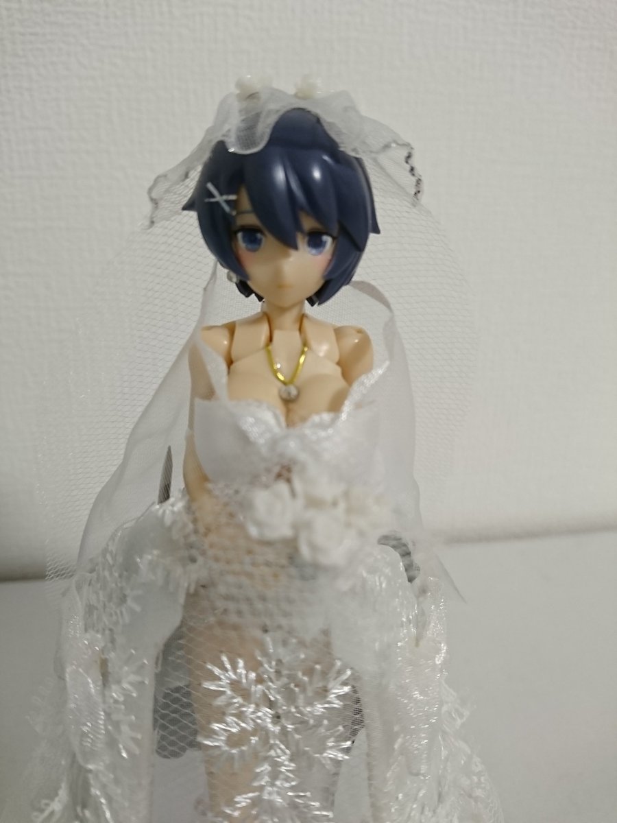 11 55 #メガミ4周年選手権 #4Bコース完成 #メガミデバイス 「女神の様な花嫁コンテスト2050」で優勝しました。真っ白なウェディングドレスにはえる黒髪とドレスの下にちらっと見える装甲がポイントだったようです。あるはずのない純白の羽が後ろに見えてくるようだと言うことでした。 20/12/10 16:36
