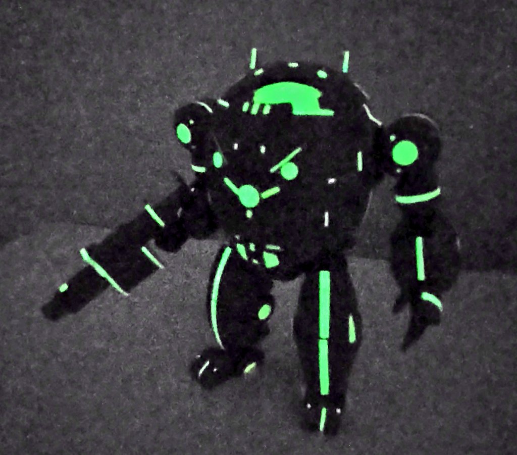 #今月作ったプラモ晒そうぜ #30MM 突撃くんを蓄光テープでドレスアップ。 こんなに光るもんなんですね〜