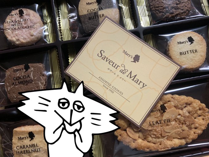 2 52 Mary's マリーとかいてメリー! ココアアーモンドばり好き!!! リーフパイは初! チョコイメージですが 焼き菓子も美味ぁ 先輩に頂きました! ごっつぁんです! 外は雨、 しとしとコーヒーブレーク #お絵かき #イラスト #おやつ 21/11/30 15:47