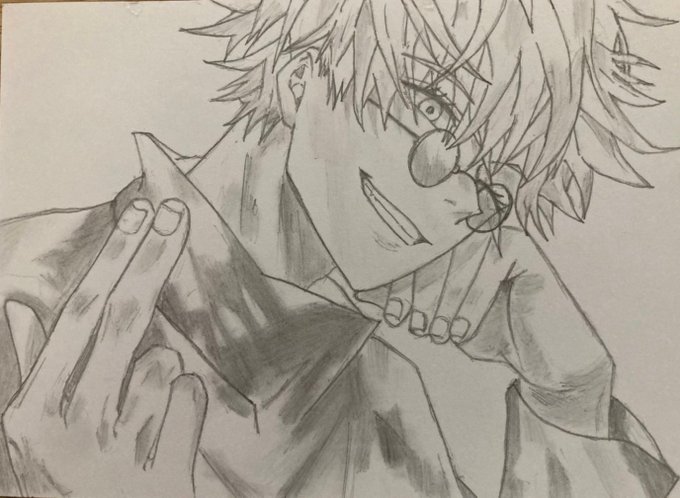 中2の長男が描きました~🙂 #呪術廻戦 #五条悟 #鉛筆画