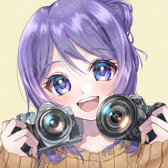 19件目のご依頼! 愛用されているカメラ君達と一緒に笑顔の1枚(˶ᐢᗜᐢ˶)♡ カメラをちゃんと描いたのは初めてだったので何かとご迷惑もお掛けしましたが、私としてもとても貴重な経験をさせていただきました✨ ありがとうございました🐱💜 #有償依頼 #有償アイコン #有償依頼受付中 #イラスト
