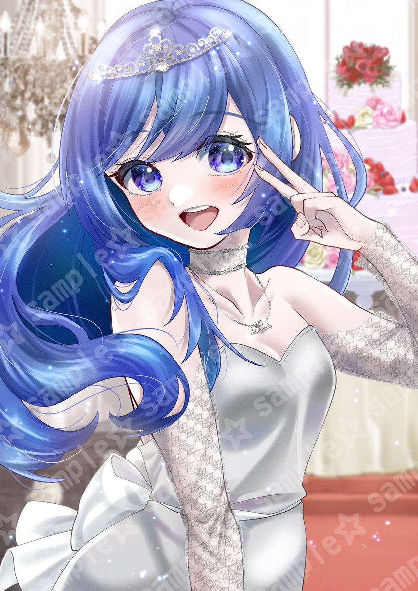 20件目のご依頼! いつもより更に女の子らしく…との事で、ボブだった髪の毛をロングで描かせていただきました💙 キラキラしたアクセサリーやシースルーでちょっとセクシーなドレスがお気に入りです🫣✨ ご依頼ありがとうございました(*´˘`*)♡ #有償依頼 #有償依頼受付中 #有償依頼募集 #イラスト