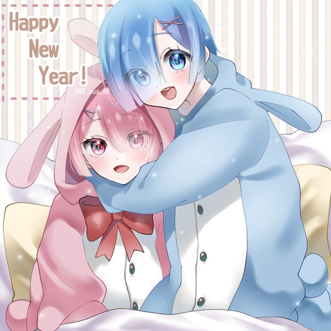 あけましておめでとうございます!🎍🐰🎍 なんともお正月感の無い絵ですが、今年もどうぞよろしくお願い致します(* .ˬ.)♡ 今年初はリゼロで! #元旦 #イラスト #リゼロ
