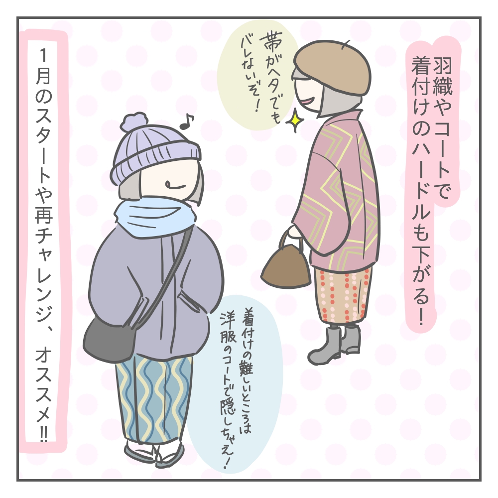【1月は着物のハードルが下がる、と思う話】 「着たいけどキッカケが…」と悩んでる人は、この時期のぜひ! 着付けはYouTube観ながらちょっとやってみて、ダメなら着付け教室くらいの気軽さでいいし、きれいに着てなくても案外大丈夫! candykimono.com/archives/17337… #漫画が読めるハッシュタグ #着物