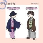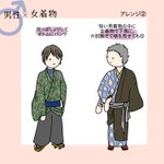 【#ジェンダーレス着物 いろいろ】 男装・女装だけじゃなく、いろんな着方が楽しめるといいなと思う。 女性らしい体型そのままで男物を着たっていいし、 女物で角帯したっていい。 従来の「美しい」形を広げていく実験場、今はそんなタイミング。 正解は自分が決める。 着物の未来を作るのは私達だ→