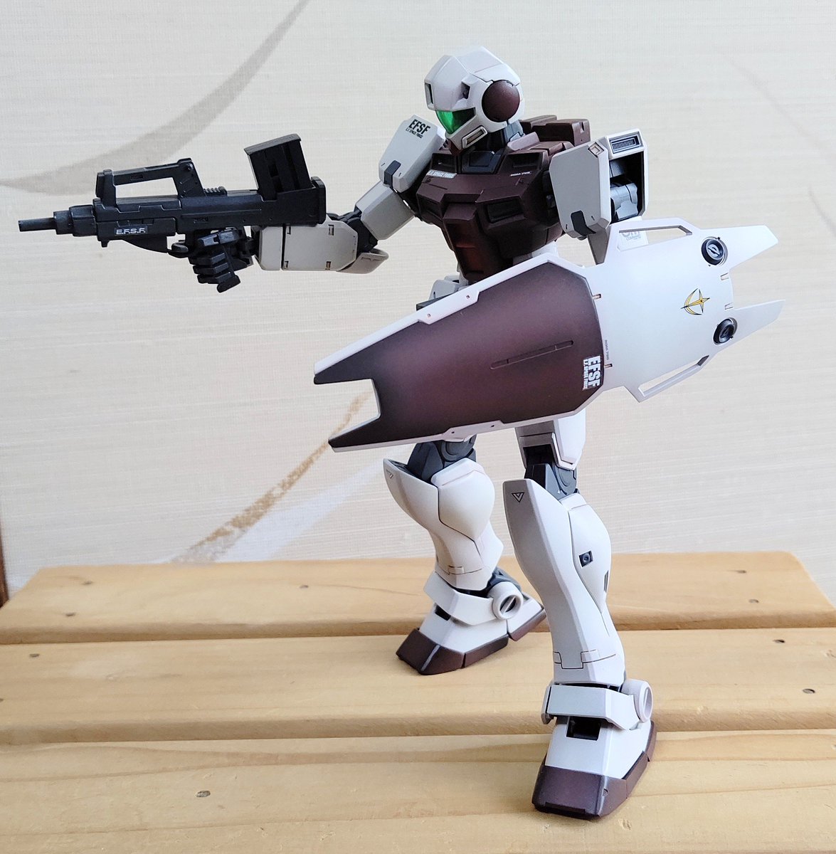 #ガンプラの画像を貼るとRTされると聞いて MGジム・コマンド コロニー戦仕様 完成‼️😆 久しぶりのマスターグレード楽しかったです😊 バレンタインも近いのでチョコ色に調合しました🤭 見てちょんまげ(*^^*ゞ