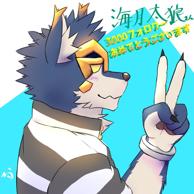 海月さん(@PHTcRShj3ZfDvLv )フォロワー3000人おめでとうございます! 代理くん(獣人のすがた)を描きました~~