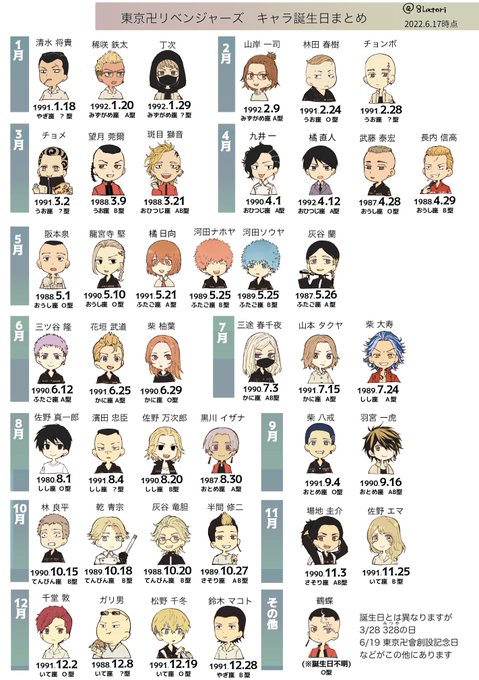 誕生日絵を描く時にごっちゃになるので現在判明してる東リベキャラの誕生日を一覧にまとめてみました。 最新のキャラブック出た直後なので、ネタバレ防止にポイピクでワンクッション(TLには後日再投稿します) poipiku.com/1903733/695453…