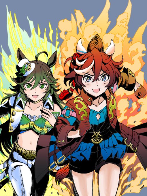 4 24 「さぁ、行こうか」「うん‼」 #ウマ娘 #ミスターシービー #ツインターボ #イラスト 23/02/14 21:09
