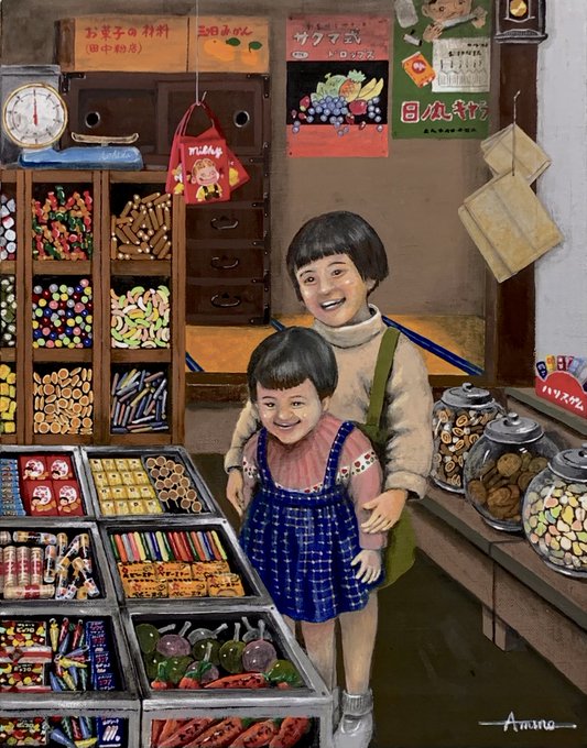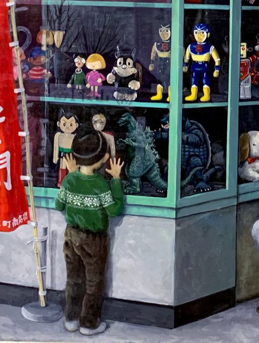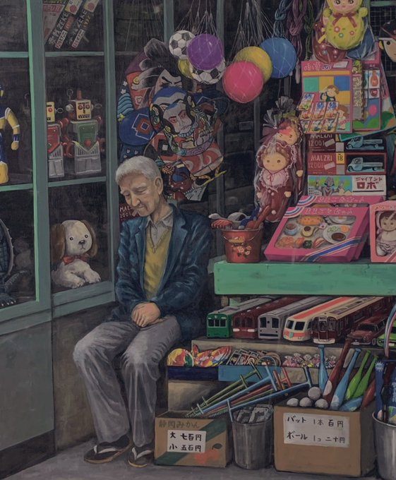 世の中がどうであろうと、Twitterがどうであろうと、愚直に絵をアップするのみの私💦💦😅 #昭和のおもちゃ屋さん アクリル絵の具