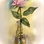 おはようございます😊 昨日は、つま恋で大きなコンサートがありました。 なので、我々はホテルが取れず、 キャンプ⛺️場にとまることになりました。でも、かえって楽しかったよ。バラの一輪挿し🌹見つけて真っ暗なキャンプ🏕️場にて描きました。水彩画 一時間