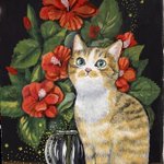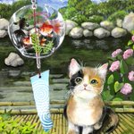 94 785 できた。 風鈴を見上げる猫 アクリル絵の具 23/08/08 01:35