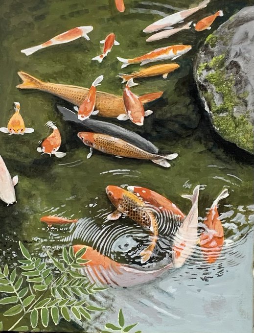 39 482 鯉を描きました。 優雅に泳ぐ鯉は見ていて飽きないです。 アクリル絵の具 23/05/11 19:16
