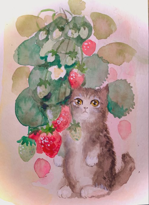 29 391 旅行中のスケッチ きれいなイチゴを見て描きたくなった。 車を止めて一時間かけたのになんだこれ、水彩画は難しい😓 23/05/06 00:57