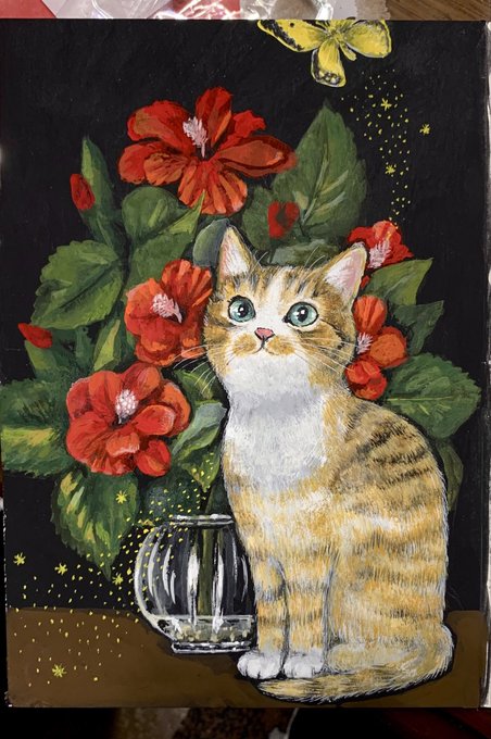 昨日の猫ちゃん出来ました😊 アクリル絵の具