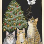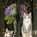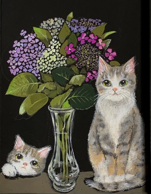 22 198 小さな猫が3匹になって 窓辺にすわりました✨✨ 小さな窓に、小さな猫達 可愛い可愛い小さな世界😊 アクリル絵の具 23/06/05 23:27