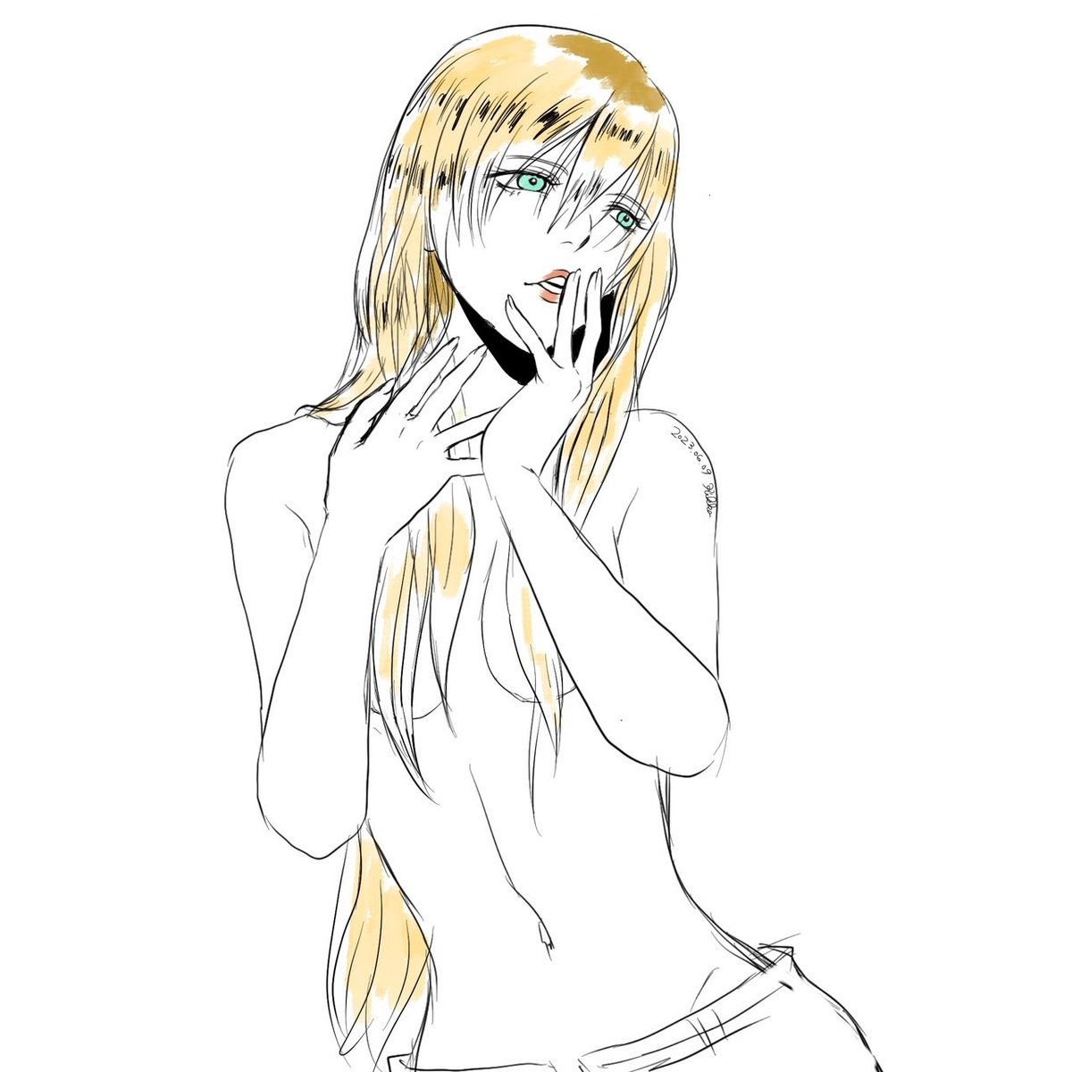 0 3 30分ドローイング9日目 唇むにってした感じにしたかった、むりだった #イラスト #落描き 23/06/09 08:47
